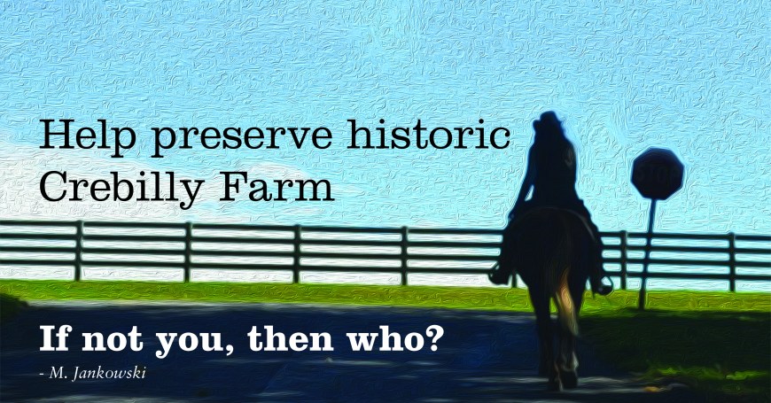 Dear Friends, It was 2016 when our up-hill marathon began, against all odds, to save Crebilly Farm from destruction. Now, after more than eight years of blood, sweat and tears, the marathon has ended and we have crossed the finish line. It is official: Crebilly Farm will be preserved forever. Forever. Now, it’s done deal. So many yearsContinue reading Final Update 11/24/24
